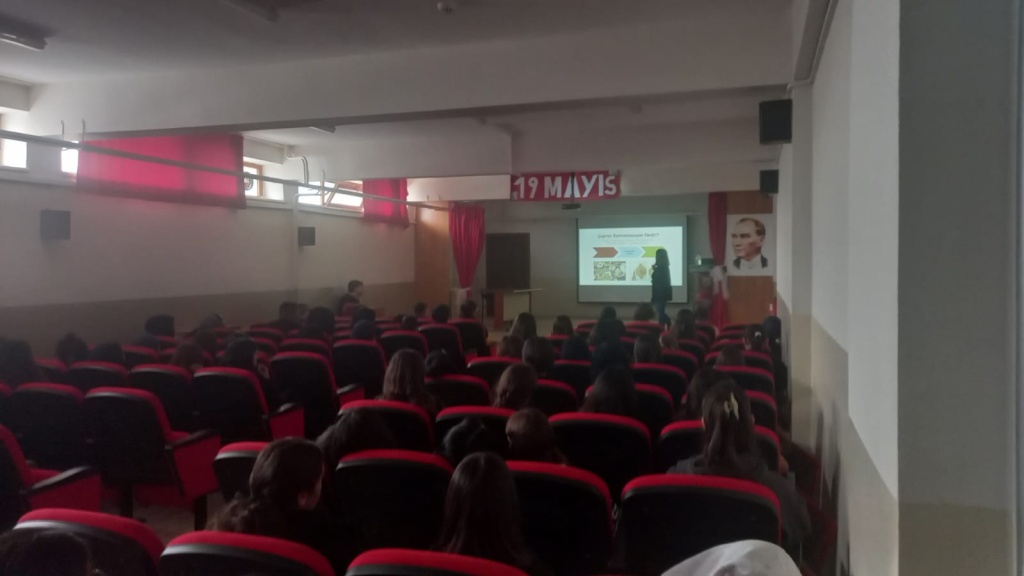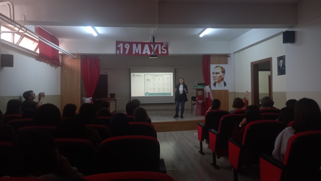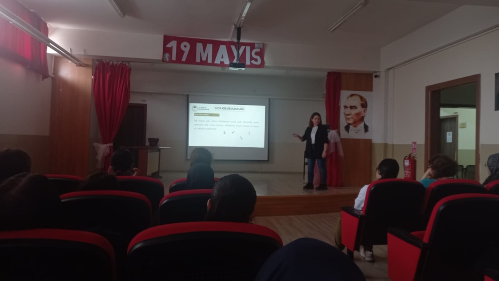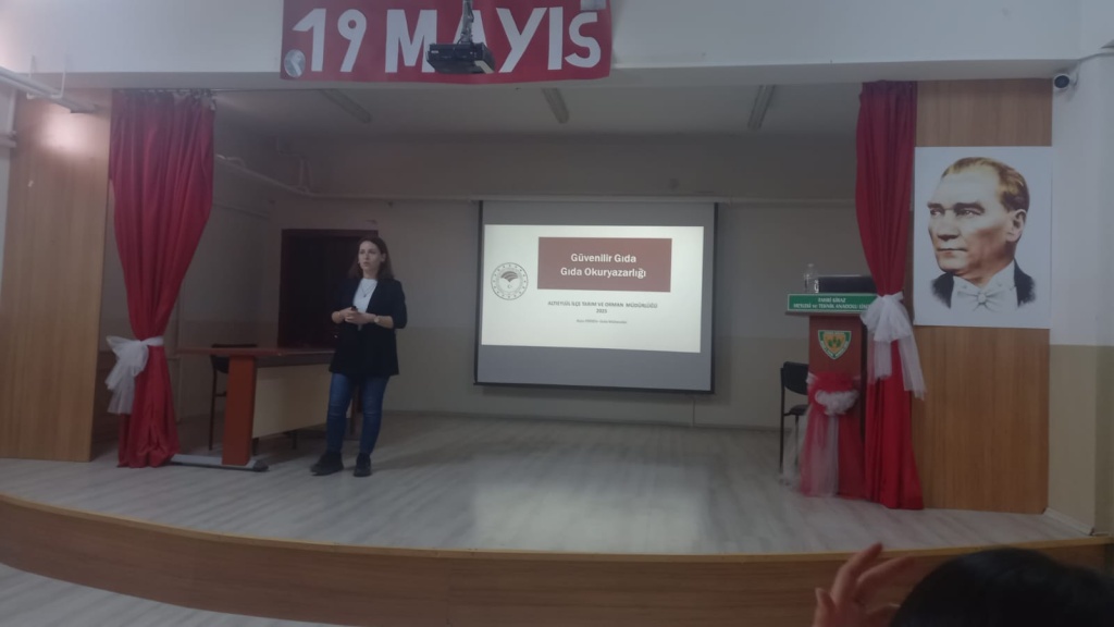 Altıeylül İlçe Tarım Müdürlüğü'nde görevli gıda mühendisi Aysu Erdem ve veteriner hekim Ali Bayramoğlu okulumuzda Güvenilir Gıda ve Gıda Okuryazarlığı konusunda 92 öğrencimizin hazır bulunduğu salonda sunumlarını yaptılar. Öğrencilerimize katkılarından ötürü kendilerine teşekkürlerimizi sunarız.